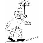 Clown With Umbrella Walking On Rope