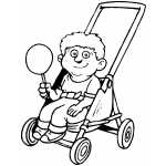 Boy In Stroller With Candy