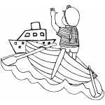 Boy Rowing To The Ship
