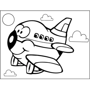 Happy Airplane Printable Coloring Page, free to download and print. The airplane in this printable aircraft coloring page has a cute little nose and a happy smile.