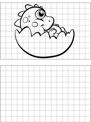 Baby Dinosaur Drawing Printable Coloring Page, free to download and print. Learn to draw a baby dinosaur in an egg by copying the drawing onto blank graph paper provided.
