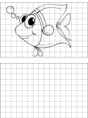 Big Eyed Fish Drawing Printable Coloring Page, free to download and print. Beginning artists will enjoy copying a picture of a big-eyed fish onto the blank graph paper provided.