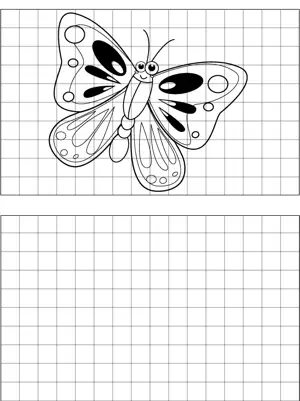 Butterfly Drawing Printable Coloring Page, free to download and print. This printable drawing aid features a butterfly and blank graph paper for replicating the picture.