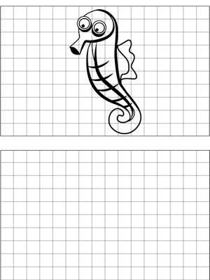 Curious Seahorse Drawing Printable Coloring Page, free to download and print. Learn to draw a curious starfish by copying the drawing onto blank graph paper provided.