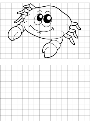 Cute Crab Drawing Printable Coloring Page, free to download and print. Great as a drawing aid, this printable graph paper features a picture of a cute crab and a blank space for students to draw their own.