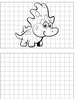 Cute Dinosaur Drawing Printable Coloring Page, free to download and print. Teach students art by having them draw their own version of the picture of a cute dinosaur on the blank graph paper provided.