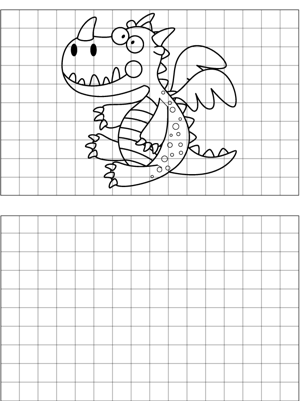 Cute Dragon Drawing Printable Coloring Page, free to download and print. Beginning artists will enjoy copying a picture of a cute dragon onto the blank graph paper provided.