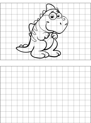 Dinosaur Drawing Printable Coloring Page, free to download and print. It's easy to learn to draw a dinosaur with this printable drawing tool that provides graph paper for replication purposes.