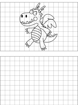 Dragon Drawing Printable Coloring Page, free to download and print. This printable drawing aid features a dragon and blank graph paper for replicating the picture.