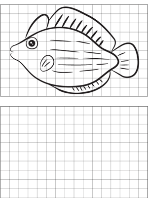 Fish Drawing Printable Coloring Page, free to download and print. Use this printable as a coloring page or an art tool by copying the picture of the fish onto the blank graph paper below.