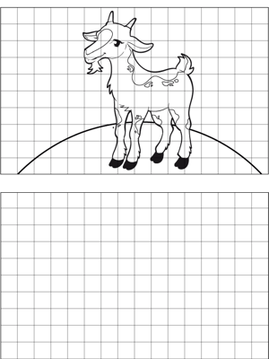 Goat Drawing Printable Coloring Page, free to download and print. It's easy to learn to draw a goat with this printable drawing tool that provides graph paper for replication purposes.