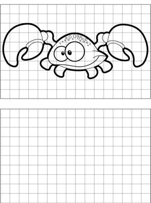 Happy Crab Drawing Printable Coloring Page, free to download and print. Learn to draw a happy crab by copying the drawing onto blank graph paper provided.