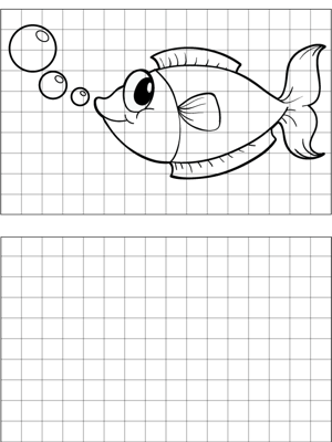 Happy Fish Drawing Printable Coloring Page, free to download and print. Teach students art by having them draw their own version of the picture of a happy fish on the blank graph paper provided.