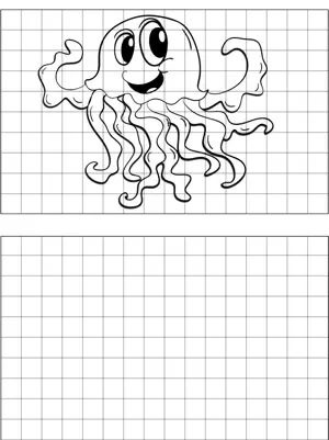 Happy Jellyfish Drawing Printable Coloring Page, free to download and print. Beginning artists will enjoy copying a picture of a happy jellyfish onto the blank graph paper provided.
