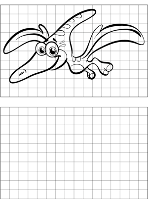 Pterodactyl Drawing Printable Coloring Page, free to download and print. Learn to draw a pterodactyl by copying the drawing onto blank graph paper provided.