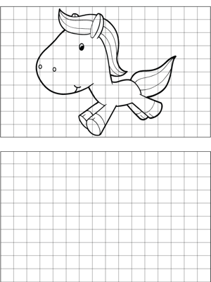 Running Horse Drawing Printable Coloring Page, free to download and print. Beginning artists will enjoy copying a picture of a running horse onto the blank graph paper provided.