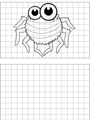 Spider Drawing Printable Coloring Page, free to download and print. Great as a drawing aid, this printable graph paper features a picture of a spider and a blank space for students to draw their own.
