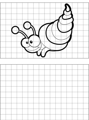 Spiral Shell Snail Drawing Printable Coloring Page, free to download and print. Use this printable as a coloring page or an art tool by copying the picture of the snail with the spiral shell onto the blank graph paper below.
