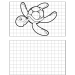 Swimming Turtle Drawing Printable Coloring Page, free to download and print. This printable drawing aid features a swimming turtle and blank graph paper for replicating the picture.