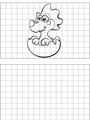 Triceratops in Egg Drawing Printable Coloring Page, free to download and print. Teach students art by having them draw their own version of the picture of a baby triceratops in an egg on the blank graph paper provided.
