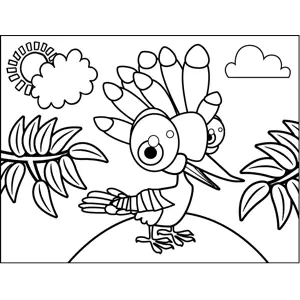 Bird with Plumage Printable Coloring Page, free to download and print. Kids who like to color can use lots of different hues to color in this printable coloring page of a bird with lots of plumage.
