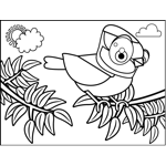 Cheerful Bird on Branch Printable Coloring Page, free to download and print. A cute cardinal hops from branch to branch in this printable bird coloring page.