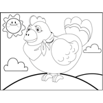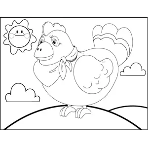 Chicken Wearing Kerchief Printable Coloring Page, free to download and print. Wearing a kerchief and standing on a hill, the pretty hen in this printable chicken coloring page is great for farm and animal art activities.