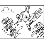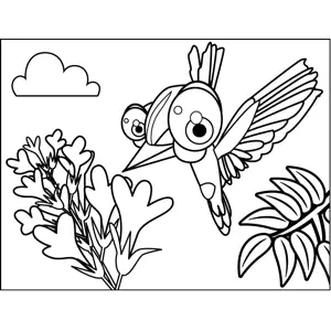 Cute Hummingbird Printable Coloring Page, free to download and print. Decorated with pretty flowers and leaves, this printable bird coloring page depicts a cute hummingbird that's flying in to take a drink.