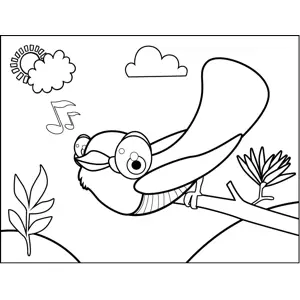 Cute Songbird Printable Coloring Page, free to download and print. Music notes indicate singing around the cute little songbird in this printable bird coloring page for kids.