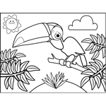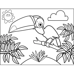 Cute Toucan Printable Coloring Page, free to download and print. This printable bird coloring page has a cute toucan perched on a leafy branch and has a fun, tropical setting.