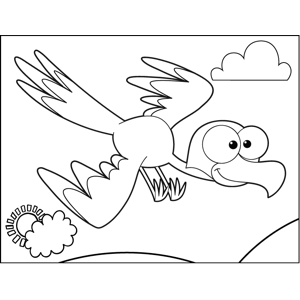 Diving Bird Printable Coloring Page, free to download and print. A happy, smiling bird goes diving through the air as it flies among the clouds in this printable animal coloring page.