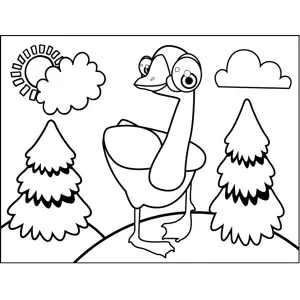Duck-Footed Bird Printable Coloring Page, free to download and print. The bird in this printable animal coloring page has a long neck and a duck-footed gait and is great for avian enthusiasts.