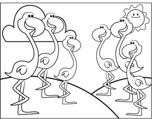 Flamingos Printable Coloring Page, free to download and print. Great for teachers and students, this printable coloring page features a flock of six happy flamingos.