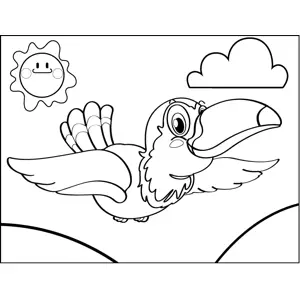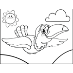 Happy Soaring Toucan Printable Coloring Page, free to download and print. Art teachers and students will like this printable bird coloring page of a cute, happy toucan flying through the air.