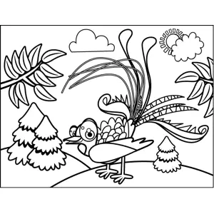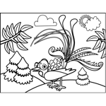 Peacock with Plumage Printable Coloring Page, free to download and print. A male peacock displays its beautiful mating plumage in this printable bird coloring page.