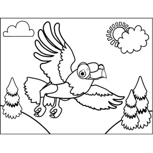 Soaring Eagle Printable Coloring Page, free to download and print. Great for bird art activities, this printable coloring page shows a cute eagle soaring over treetops.