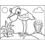 Spindly Bird Printable Coloring Page, free to download and print. This printable bird coloring page shows a tall, cute crane or heron with long, spindly legs.