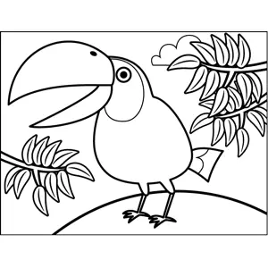 Squawking Toucan Printable Coloring Page, free to download and print. Teachers can use this printable bird coloring page of a squawking toucan when teaching about animal species.