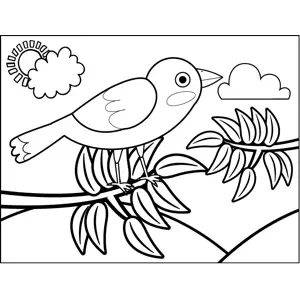 Swallow in Leaves Printable Coloring Page, free to download and print. A pretty swallow hops among the leaves on a tree branch in this printable bird coloring page for kids.