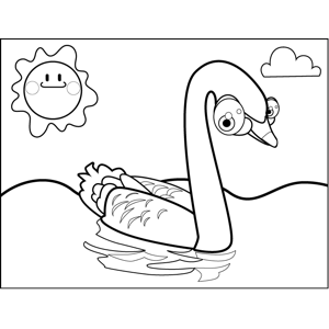 Swan Printable Coloring Page, free to download and print. Great for kids who like to color, this printable bird coloring page shows a pretty swan swimming through the water under a cute sun.