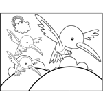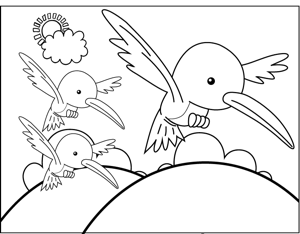 Three Birds Printable Coloring Page, free to download and print. This printable animal coloring page depicts three birds flying through the air with their wings spread.