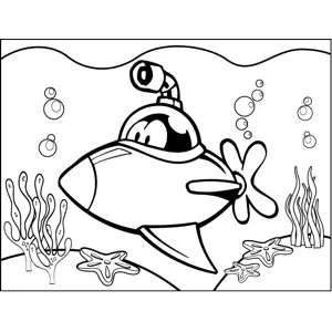 Cartoon Submarine Printable Coloring Page, free to download and print. A cute, cartoon submarine extends its periscope underwater in this printable boat coloring page.