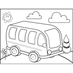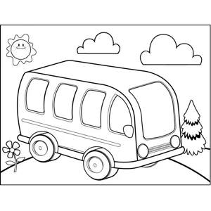 Bus on Hill Printable Coloring Page, free to download and print. A bus with big windows coasts down a hill in this printable vehicle coloring page for kids.