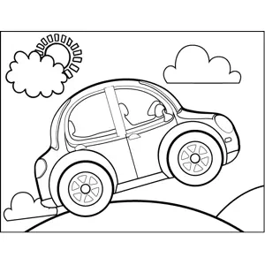 Car Popping Wheelies Printable Coloring Page, free to download and print. A car pops a wheelie despite being a very compact vehicle in this printable transportation coloring page.