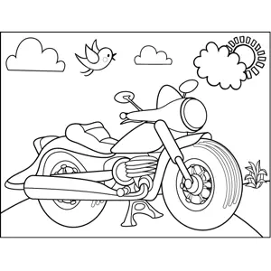 Motorcycle Printable Coloring Page, free to download and print. If you like to ride a hog, you'll love coloring in the shiny new motorcycle in this printable vehicle coloring page.