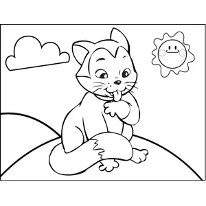 Cat Licking Paw Printable Coloring Page, free to download and print. Learn about animal hygiene with this printable coloring page of a cat washing itself by licking its paw.