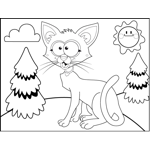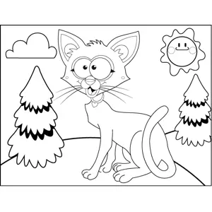 Excited Cat Printable Coloring Page, free to download and print. The cat in this printable animal coloring page is pricking up its ears with excitement.