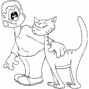 Happy Cat With Owner coloring page