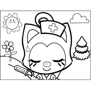 Nurse Cat Printable Coloring Page, free to download and print. Drawn in the cute anime style, this printable cat coloring page depicts a kitten as a nurse with a syringe and a little hat.