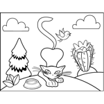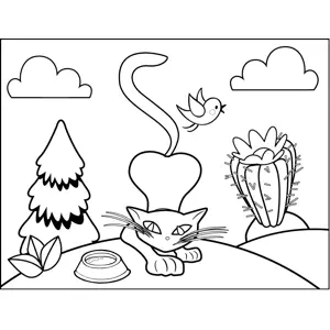 Prowling Siamese Cat Printable Coloring Page, free to download and print. The prowling Siamese cat in this printable kitty coloring page stalks his food dish, ready to pounce.